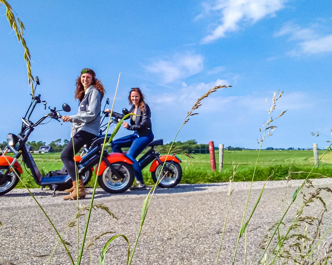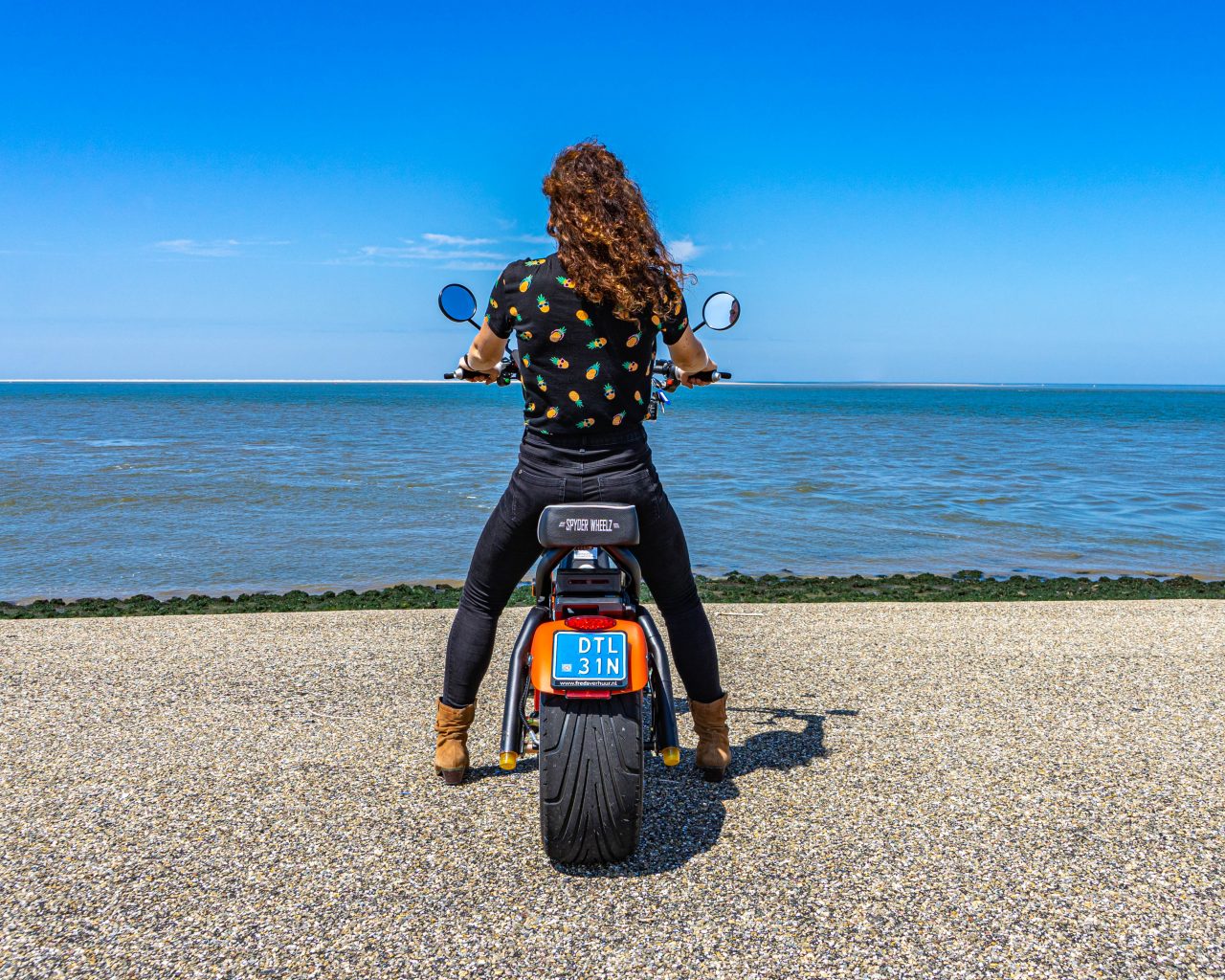 Eigenlijk is een e-chopper een combinatie van een elektrische step en een motorfiets. Met een beetje inlevingsvermogen heb je het gevoel alsof je op een Harley-Davidson stapt haha. De e-choppers kunnen 30 kilometer per uur en zijn dus volledig elektrisch. Het is daardoor een prettige én duurzame manier om de duinen in de Kop van Noord-Holland te ontdekken. En geluidloos dat ze zijn!