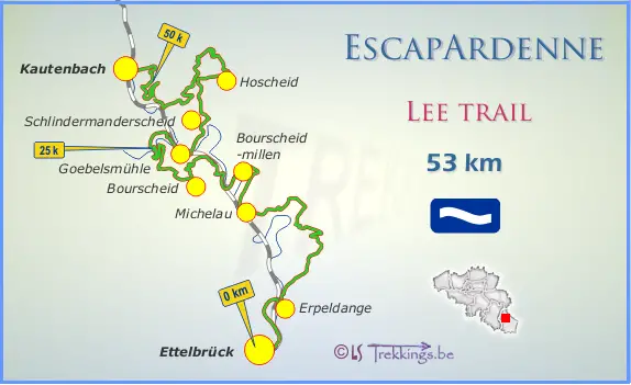 De Lee Trail in Luxemburg is 53 kilometer lang. De Lee Trail is onderdeel van de Escapardenne Lee Trail, die 158 kilometer door België en Luxemburg loopt. De Escapardenne Trail loopt van het Belgische La-Roche-en-Ardenne naar Ettelbrück loopt en de Lee Trail is het laatste deel van deze meerdaagse wandeltocht. Het merendeel van de wandelroute is via onverharde paden.