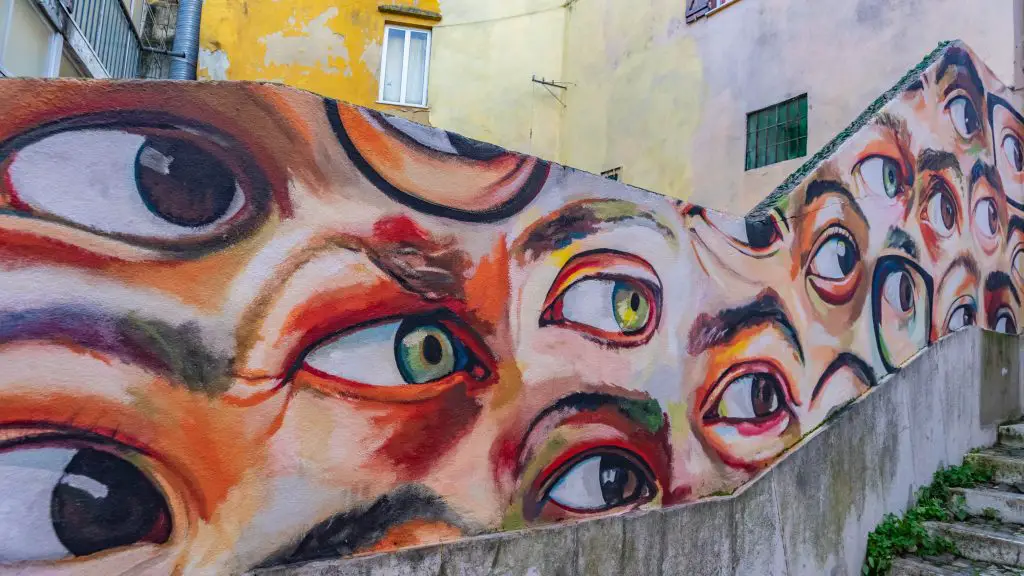 Ik had street art niet echt verwacht in Lissabon, maar wat vind je verspreid door de stad veel kunstwerken zeg! De meeste street art spotte ik in de wijk Alfama, maar ook Bairro Alto, Baixa en de LxFactory zijn plekken waar je veel kleurrijke kunstwerken op straat tegenkomt.