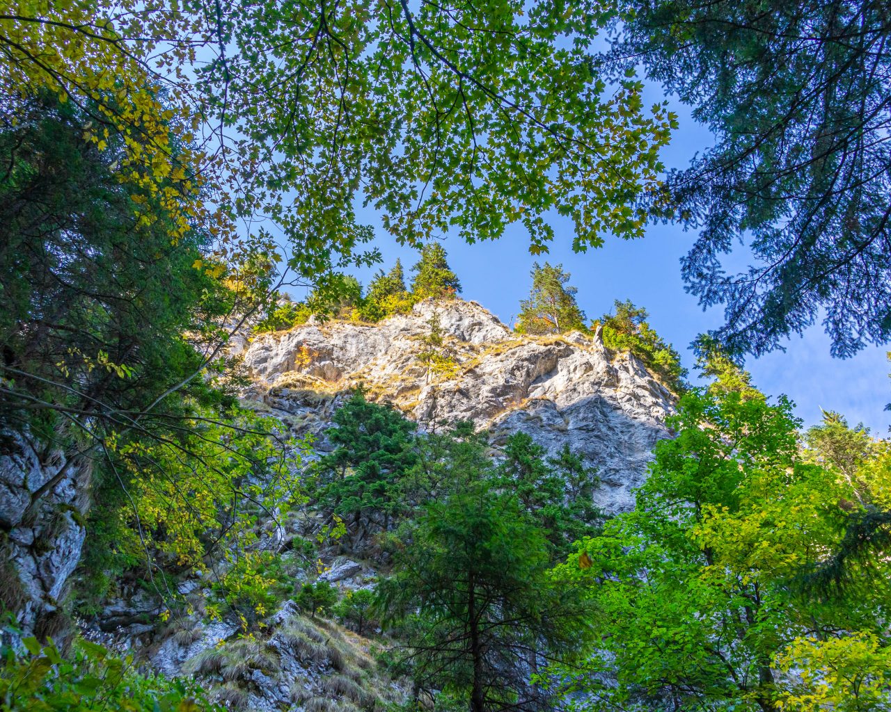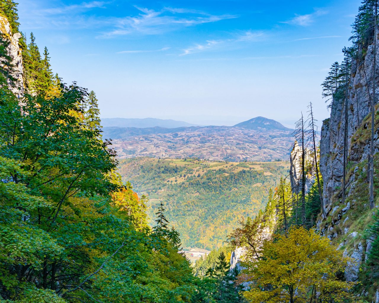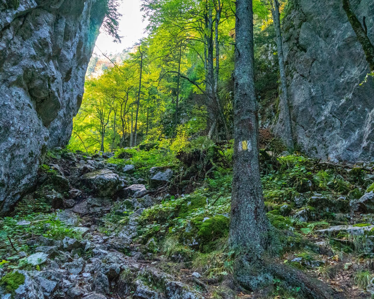 Het eerste uur is eerlijk gezegd nogal saai, want je loopt vanaf het Zărnești treinstation via een autoweg naar de parkingang. Je zou dit stuk ook met de taxi kunnen afleggen. Hierna loop je door een prachtige vallei: aan beide zijden gigantische stenen. Soms kom je een paar grotten tegen en deze bergen zijn ook populair voor klimmers. Na ongeveer een uur wandelen op een vlakke weg loopt de weg meer naar boven. Hier kun je kiezen om ofwel de gele streep ofwel de blauwe streep te volgen naar Cabana Curmătura. Je moet natuurlijk wel flink klimmen, want je moet toch zo’n 700 meter omhoog. Maar op een paar klimstukken na valt het allemaal hartstikke mee.