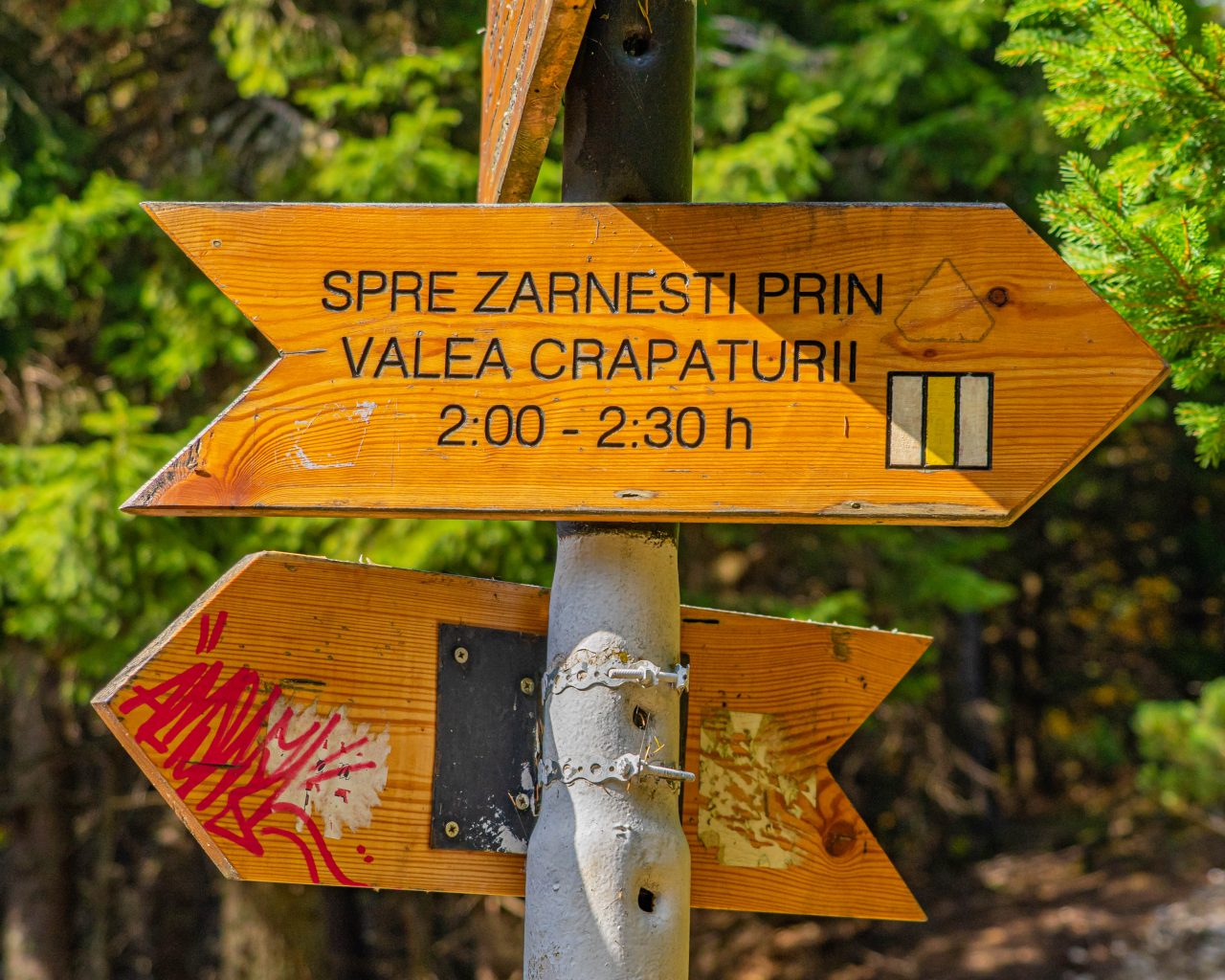 Een mooie en makkelijke route loopt van het dorp Zărnești naar de berghut Cabana Curmătura. Je kunt hier lekker lunchen, maar ook overnachten. Bel wel even van tevoren om te vragen of ze bedden beschikbaar hebben. Het telefoonnummer vind je op de Facebookpagina van Cabana Curmătura. Deze wandeltocht kun je in 1 dag doen. De wandelroute wordt aangegeven met een blauwe of een gele streep. Volg bijvoorbeeld de gele streep op de heenweg en de blauwe streep op de terugweg. Beide routes worden als ‘easy’ aangeduid.