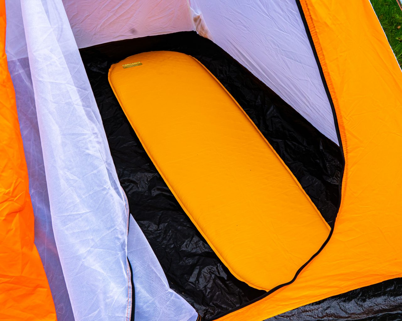 - 1-persoonstent, Highlander Blackthorn (lichtgewicht en ideaal voor soloreizigers. 1,5 kilo). Let op: ik ben 1.68m en voor mij is deze tent ideaal, maar ik denk dat mensen boven 1.75m hier minder prettig in liggen.