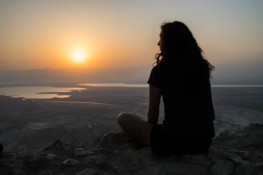 Gewichtloos. Ik voel me als een ruimtevaarder die rondzweeft zonder specifieke richting. Het kost moeite om m’n benen onder water te houden. Ze drijven iedere keer weer omhoog, alsof de zwaartekracht een omgekeerde werking heeft. Ik kijk naar m’n handen: na een half uur is er nog steeds geen rimpel op m’n vingertoppen te bekennen. Naast me begint een jongetje te spetteren en al snel daarna te huilen. Enkele druppels water zijn in z’n ogen gekomen en plezierig is het niet. Ik veeg de spetters van m’n zonnebril af en geniet van het uitzicht op de Jordaanse bergen, die lichtoranje kleuren door de zakkende zon. Op de mensen die zich insmeren met donkergrijze modder om een babyhuidje te krijgen. En op iedereen die zorgeloos ronddrijft in een van de zoutste meren ter wereld, oftewel de Dode Zee.