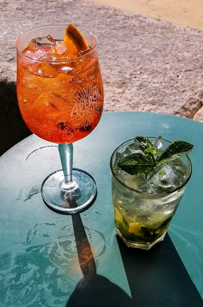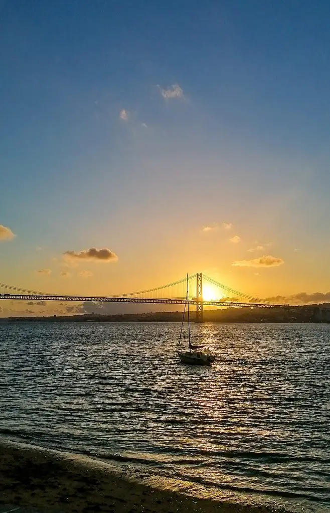23. Cocktails drinken aan de Taag. Aan de andere kant van de Taag rivier vind je het dorp Cacilhas. Vanaf Cais do Sodre kun je regelmatig een boot pakken naar Cacilhas. Vanaf hier loop je langs het water naar Atira-te ao Rio. Een van de beste plekken om de zonsondergang in Lissabon te zien! Kosten: gemiddeld €7 euro voor een cocktail