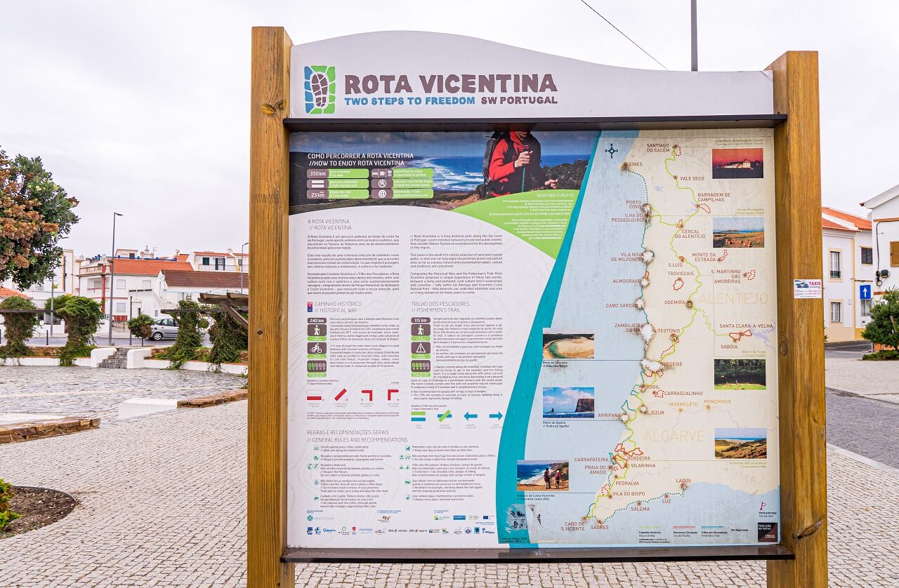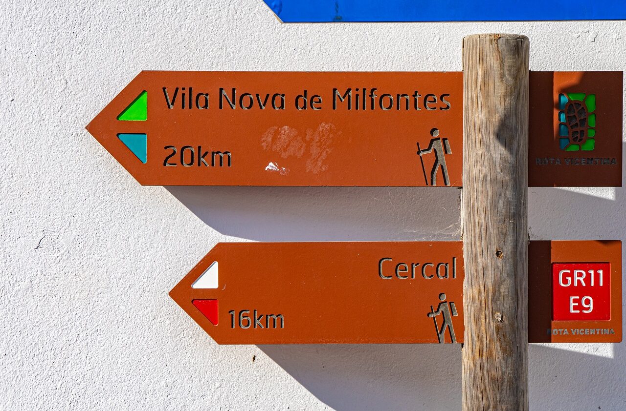 De markering van de Fisherman’s Trail is een groene + blauwe streep. De Historical Trail loopt vrijwel parallel met de Fisherman’s Trail, maar dan via het platteland. Deze wordt aangegeven met een rood + witte streep. Soms kom je tijdens het wandelen ook een geel + rode streep tegen: dit is de markering van extra routes van de Rota Vicentina.
