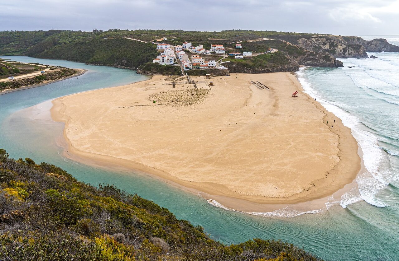 Ik had deze dag pech met het weer, maar alsnog was dit een mooie en diverse etappe. Je loopt door duinen, langs kliffen, door bossen en krijgt de laatste kilometers ook nog wat van het plattelandsleven mee. Na zo’n 11 kilometer wandel je door Azenha do Mar, een ietwat sober dorp met een paar restaurants. Maar de rest van de route is prachtig en ongerept. Ook het uitzicht op Praia de Odeceixe Mar vond ik erg mooi. Een bijzonder strand dat laat zien dat stranden in Alentejo in alle vormen te zien zijn. Odeceixe is een leuke plek om wat meer van het dagelijks leven mee te krijgen én is een eerste dorp aan de Fisherman’s Trail dat tot nu toe niet direct aan zee ligt.