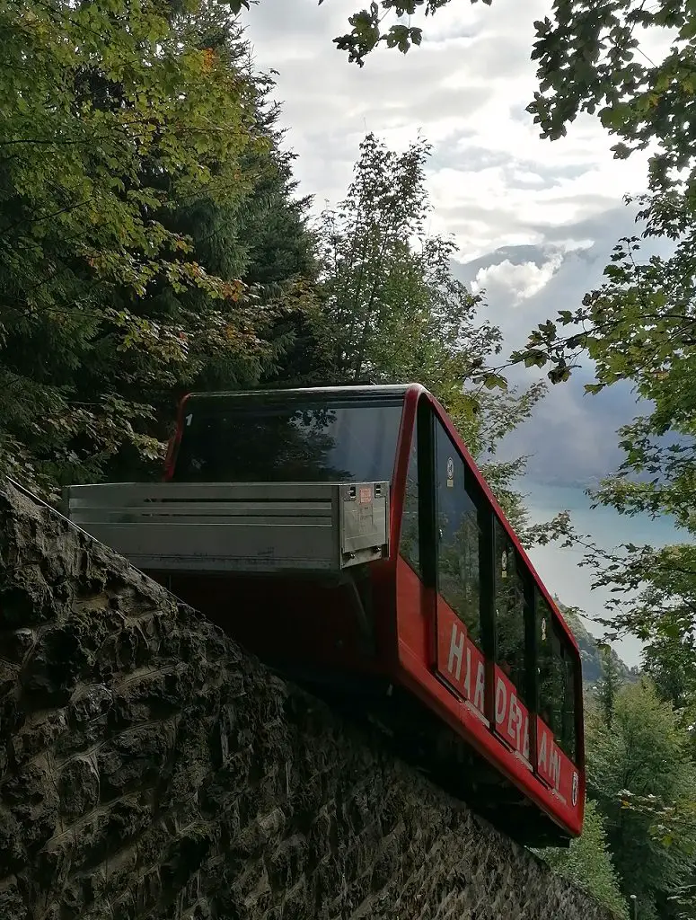 Je kunt het stuk tussen Interlaken en Harder Kulm ook overbruggen met de berglift. Een enkele rit brengt je in 10 minuten naar boven en kost 17 Zwitserse Frank (€16 euro) voor volwassenen.