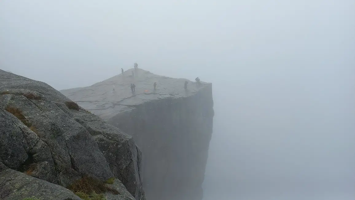 Jammer genoeg had ik niet zo’n geluk met het weer toen ik de wandeling naar Preikestolen maakte: het was regenachtig en zeer mistig. Hierdoor kon ik niet echt genieten van het indrukwekkende uitzicht vanaf deze “preekstoel”. Maar van wat ik op andermans foto’s heb gezien hoort Preikestolen toch zeker in het rijtje van mooie plekken in Zuid-Noorwegen.