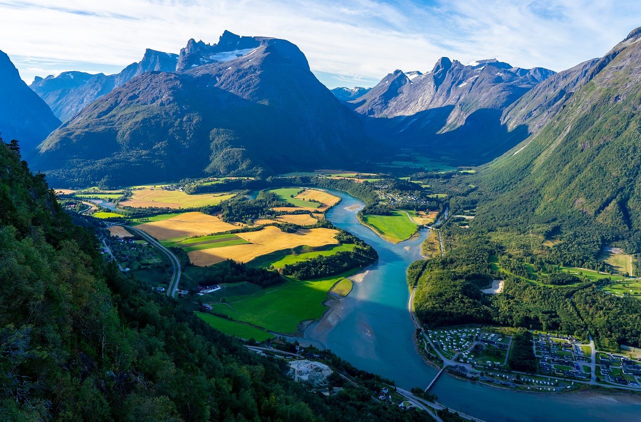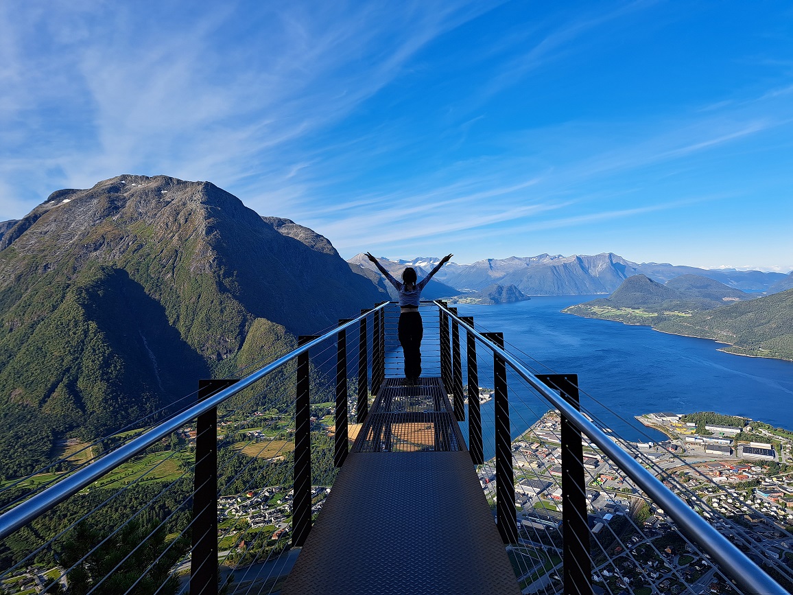 Wil je een wandeling vanaf Andalsnes starten? Dan kun je ook naar Rampestreken wandelen. In ongeveer 1 uur klim je zo’n 500 meter omhoog naar dit uitzichtpunt. Vanaf hier heb je een geweldig uitzicht over Andalsnes, de Rauma rivier en de bergachtige omgeving! Als je vervolgens doorloopt kom je al snel bij Nesaksla (715 meter hoogte), waar ook een restaurant zit. Dit is het eindpunt van de kabelbaan die vanaf Andalsnes naar boven gaat.