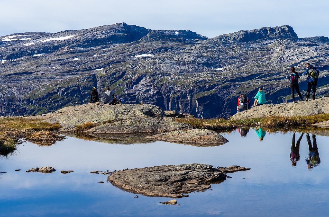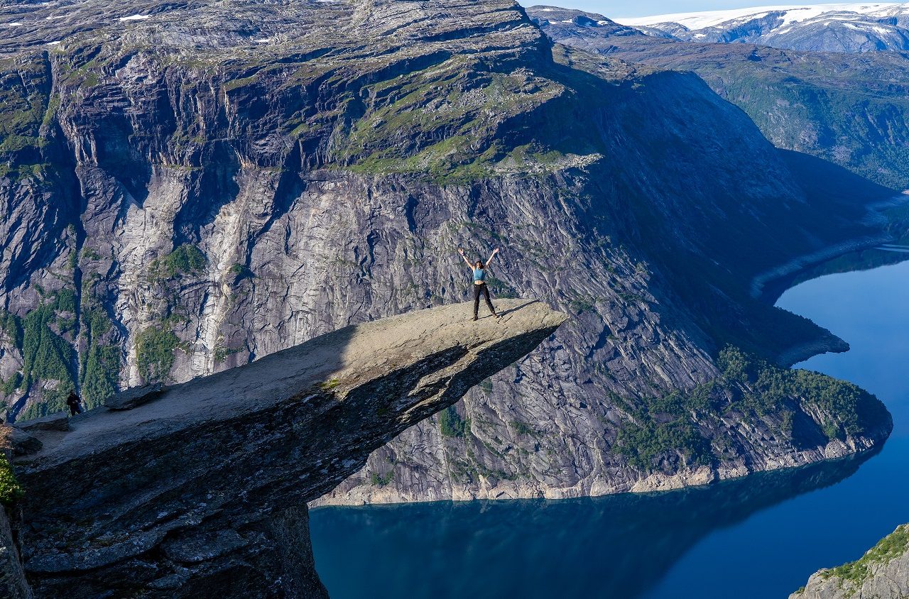 Op de foto lijkt het enger dan dat het in werkelijkheid is om erop te staan: het is een vrij brede en stevige rots. Ook het uitzicht over een prachtig bergmeer en de imposante omgeving is de moeite van deze wandeling waard. Je verveelt je geen moment tijdens het wandelen. Odda is de beste uitvalsbasis om de Trolltunga te bezoeken.