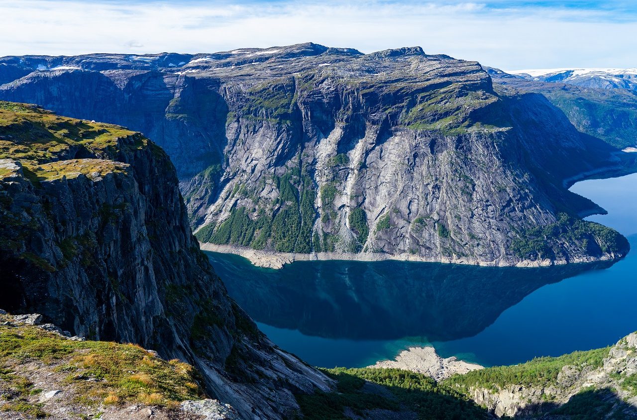 Een van de mooiste plekken in Zuid-Noorwegen is toch wel Trolltunga. Je kunt enkel bij deze “Trollentong” komen door een wandeling van 20 kilometer te maken (of 28 kilometer als je de shuttlebus niet gebruikt). De Noorse naam verwijst naar de vorm van de rots, die als een tong uit een immense rotswand steekt. Bijzonder om te zien!