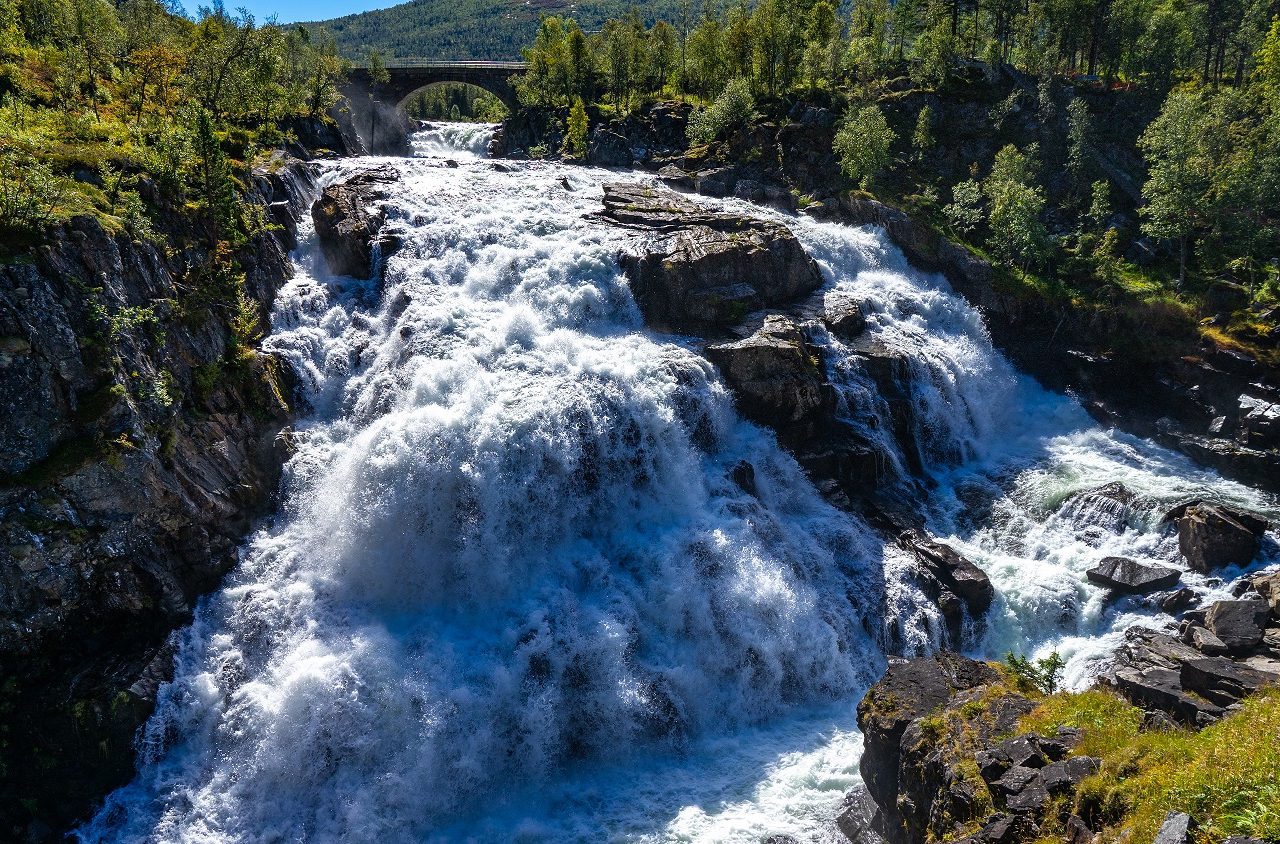 Een van de populairste mooie plekken in Zuid-Noorwegen is ongetwijfeld de Voringsfossen waterval. Het is indrukwekkend met hoe veel kracht het water hier naar beneden stort! Het Noorse woord vyrd betekent trots, fossen betekent waterval. Deze waterval is zelfs zo krachtig dat hij elektriciteit genereert!
