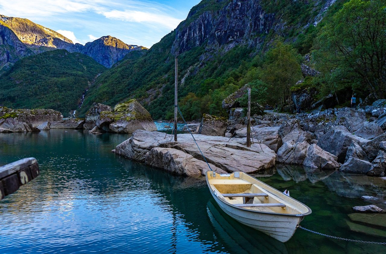 Odda is een bekende plaats in Zuid-Noorwegen omdat veel mensen vanaf hier naar Trolltunga gaan. Maar vanaf Odda reis je ook zo naar Bondhusvatnet. Dit gletsjermeer ligt ten noordwesten van Odda, in het Folgefonna Nationaal Park. Als je vanaf Sundal een stukje doorrijdt vind je een parkeerplaats. Vanaf hier wandel je in ongeveer een half uur naar het meer toe. Wanneer je een eenzaam houten bootje ziet drijven op een meer met een indrukwekkende omgeving weet je dat je er bent.