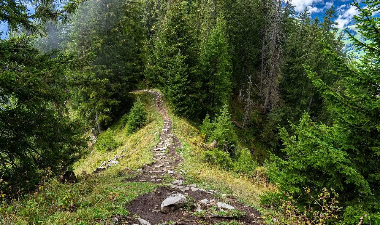 Vanaf Grindelwald First kun je ervoor kiezen om naar beneden te wandelen, naar het dorp Grindelwald. Sommige wegen hebben een daling van maar liefst 20%, dus je traint hier goed jouw kuiten. De wandeling van First naar het dorp duurt zo’n 2 uur.