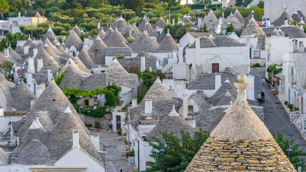 Ook Alberobello hoort zeker in het rijtje mooiste plekken in Puglia. Alberobello is de stad van de trulli. Maar wat zijn dat dan? Een trullo is een wit, kegelvormig huisje dat typerend is voor de regio Puglia. En in Alberobello vindt je er honderden bij elkaar! Toen ik door de straten van Alberobello liep had ik even het gevoel alsof ik in het smurfendorp was binnengestapt. Het heeft echt iets aandoenlijks. Tegenwoordig zitten er in de meeste trulli winkels en restaurants gehuisvest, maar mensen woonden hier eeuwen. Een van de winkeliers vertelde dat zelfs zijn ouders nog in de trullo zijn opgegroeid die ze nu tot winkel hebben verbouwd. Meerdere trulli bieden mooie uitzichten over het dorp aan (gratis) en het is zeker de moeite waard om door te lopen naar de trullo kerk.