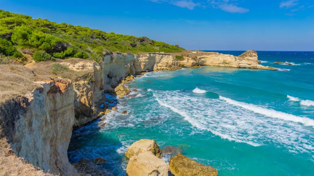 Torre dell’Orso ligt aan de oostelijke kust van Puglia. Als je in Lecce overnacht is dit een fijne plek om een stranddag in te plannen. Vergeet niet om via de graffititrappen naar boven te lopen en de toren van het dorp te bewonderen. Vanaf hier heb je namelijk ook een mooi uitzicht over het strand. Na Torre dell’ Orso veranderen de zandstranden in een wat ruigere kustlijn. Een aanrader is om door te lopen naar Torre Sant’Andrea. De wandeling is vanaf het strand van Torre dell’Orso zo’n 2,5 kilometer.