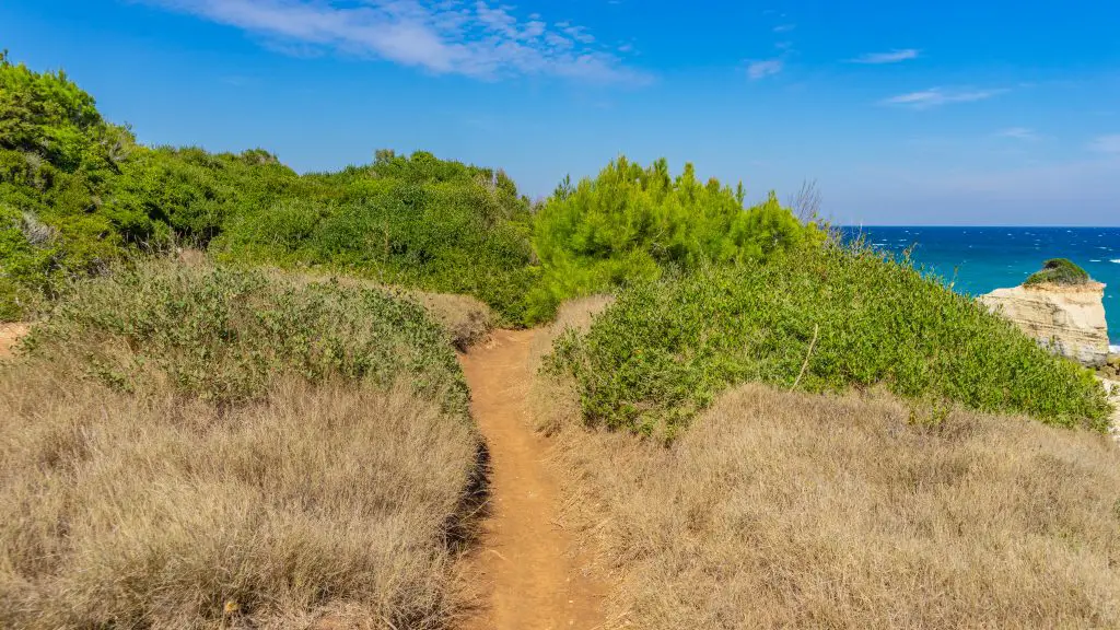 De kust rondom Torre Sant’Andrea lijkt haast alsof je je aan het einde van de wereld bevindt. Omringd door witte rotsen, een heldere blauwe zee en groene natuur, terwijl je over een bruin zandpad wandelt. Wat een prachtige plek en wat een rust. Je komt hier slechts een paar andere wandelaars en mountainbikers tegen, maar hebt de natuur eigenlijk helemaal voor jezelf.