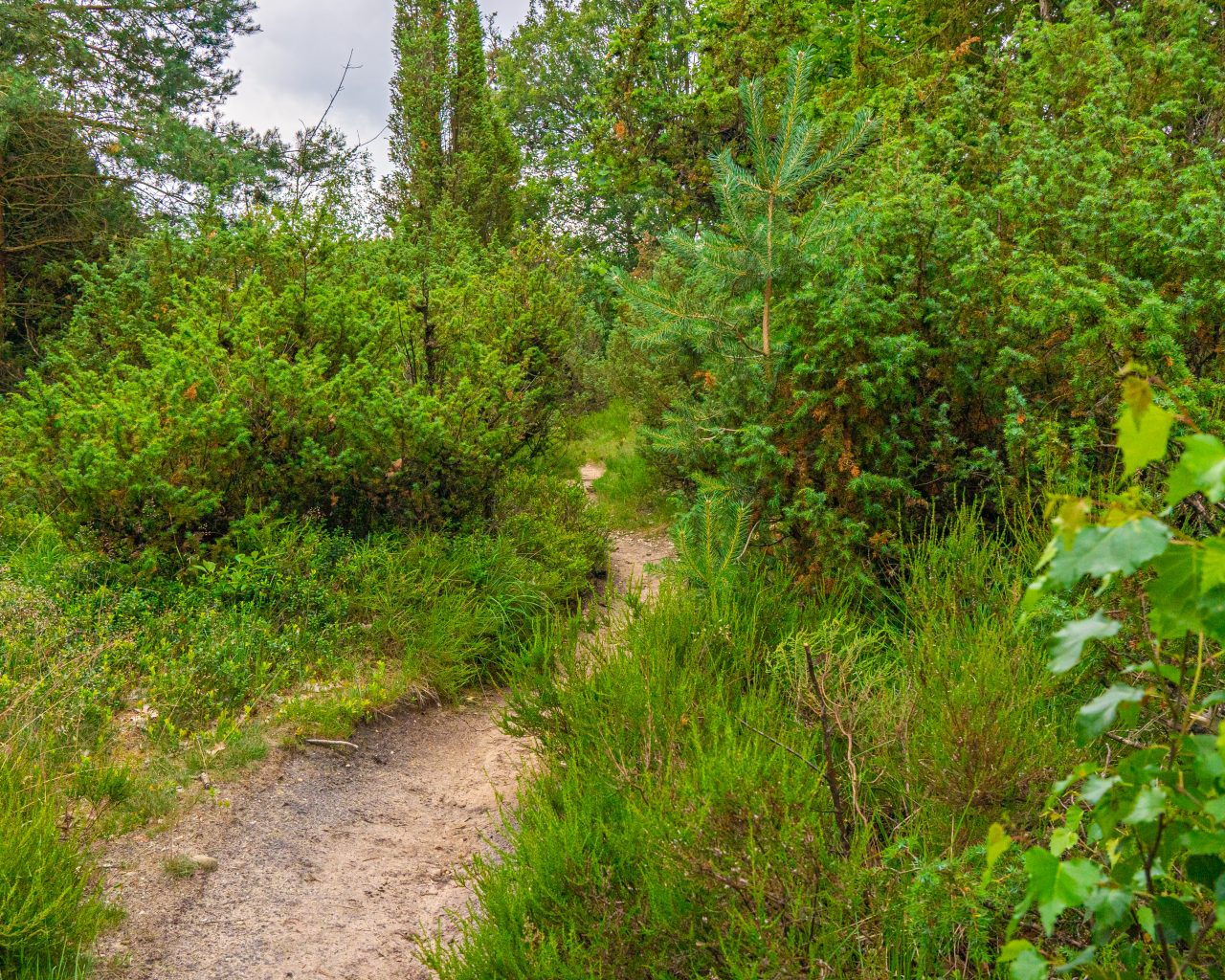 Ik laat Hellendoorn en het gelach uit het Avonturenpark achter me. De weg tot het treinspoor en de provinciale weg is niet heel bijzonder, maar daarna word ik enthousiast. Ik heb inmiddels een van mijn favoriete nationale parken in Nederland bereikt: de Sallandse Heuvelrug.