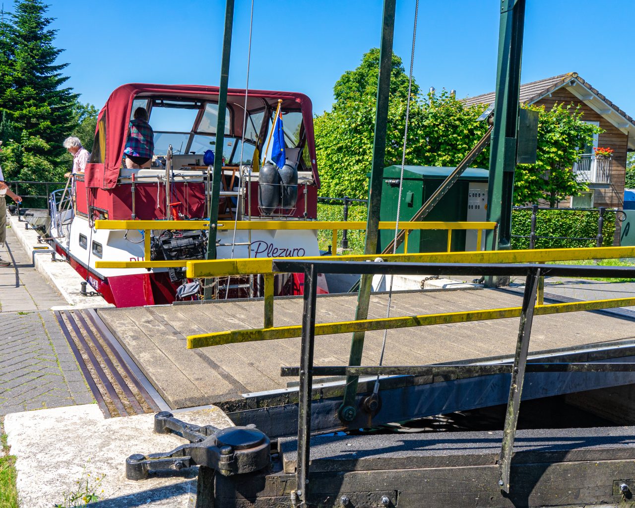 “Hij gaat hier door de sluis naar de meren.” Ik kijk de man met grote ogen aan. Die boot gaat nooit in de sluis passen. “Wacht maar, dan zie je het zelf”, alsof hij mijn gedachten kan lezen.