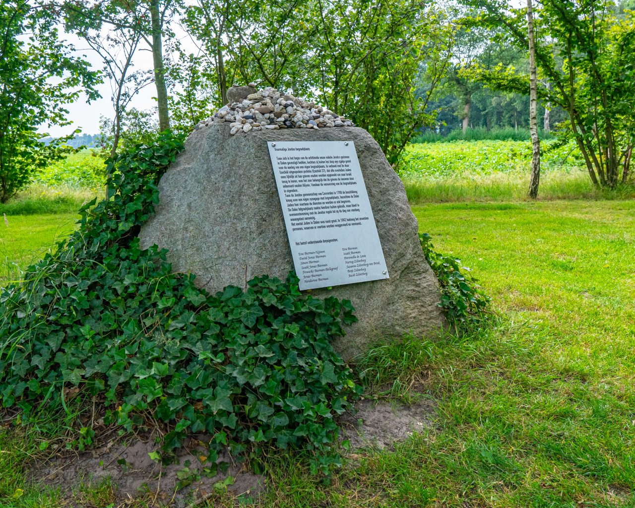 Na mijn pauze stap ik ook weer door. Er is weinig te zien onderweg. Ik stop even bij de Joodse begraafplaats. Joodse mensen moeten volgens het geloof op een plek worden begraven waar hun lichaam ‘bewaard’ blijft. Mocht er ooit een lichamelijke wederopstanding komen. Cremeren is in het Jodendom daarom uit den boze, al geldt dit vooral voor orthodoxe joden. Wel is het gebruikelijk om een steentje bij het graf achter te laten, zodat het duidelijk is dat er iemand langs is geweest.