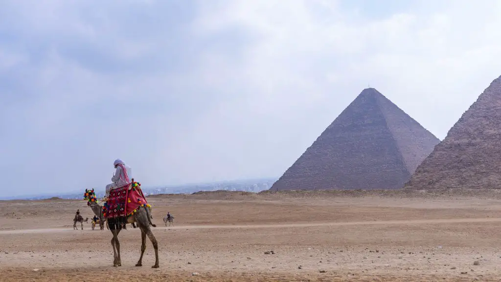 De piramides staan aan de rand van de Westelijke Woestijn: een ideale plek voor een kamelentocht. Er zal je ongetwijfeld meerdere keren gevraagd worden of je een ritje op een kameel wilt maken. Bekijk van tevoren wel hoe de dieren eruitzien en hoe de mensen met de dieren omgaan. Krijgen ze genoeg te eten? Mogen ze ook zitten of moeten ze de hele dag staan? Hebben ze geen wonden? Kamelenhouders kunnen een keurmerk hebben dat aangeeft dat ze op een verantwoorde manier met de dieren omgaan.