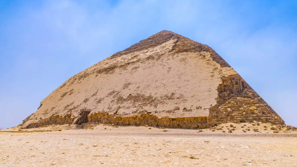 Ten zuiden van Sakkara vind je het dorpje Dahshur. Ook hier vind je twee bijzondere piramides die een bezoek waard zijn. Al is het maar omdat bijna niemand hier komt. Zo had ik de Rode Piramide – die overigens minder rood is dan dat je denkt – helemaal voor mezelf. Extra fijn is dat de entree om bij deze piramide naar binnen te gaan al bij de entreeprijs van 60 Egyptische pond voor de Dahshur Piramides zit inbegrepen. Niet ver van de Rode Piramide vind je de vreemd gevormde Bent Pyramid.