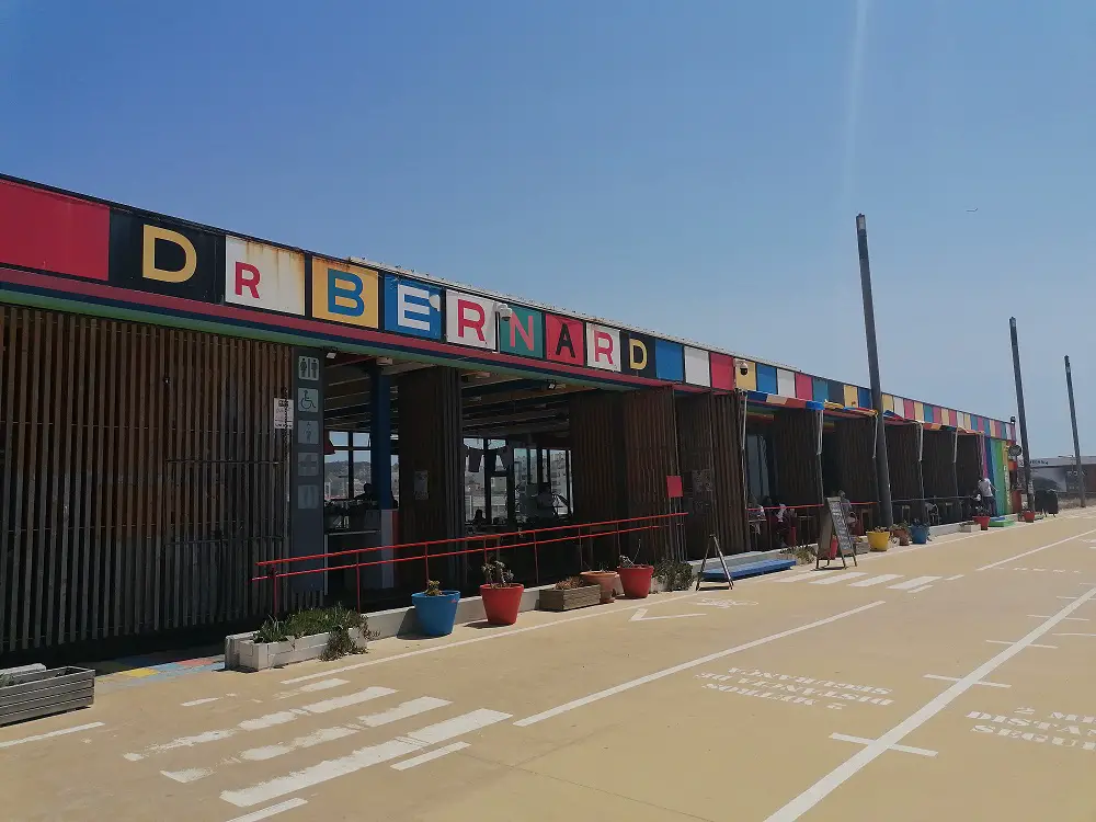 Een van de meest kleurrijke restaurants op de boulevard van Costa da Caparica is Dr Bernard. Niet de goedkoopste plek die je zult vinden aan de boulevard, maar de prijzen zijn nog steeds vergelijkbaar met Nederland en de sfeer is goed. Ik zit hier regelmatig na het surfen om van het uitzicht op het strand en de surfers te genieten met galão (er zijn ook vegan opties voor melk). Bovendien is dit ook een prima plek om van cocktails te genieten, met name tijdens de zonsondergang.