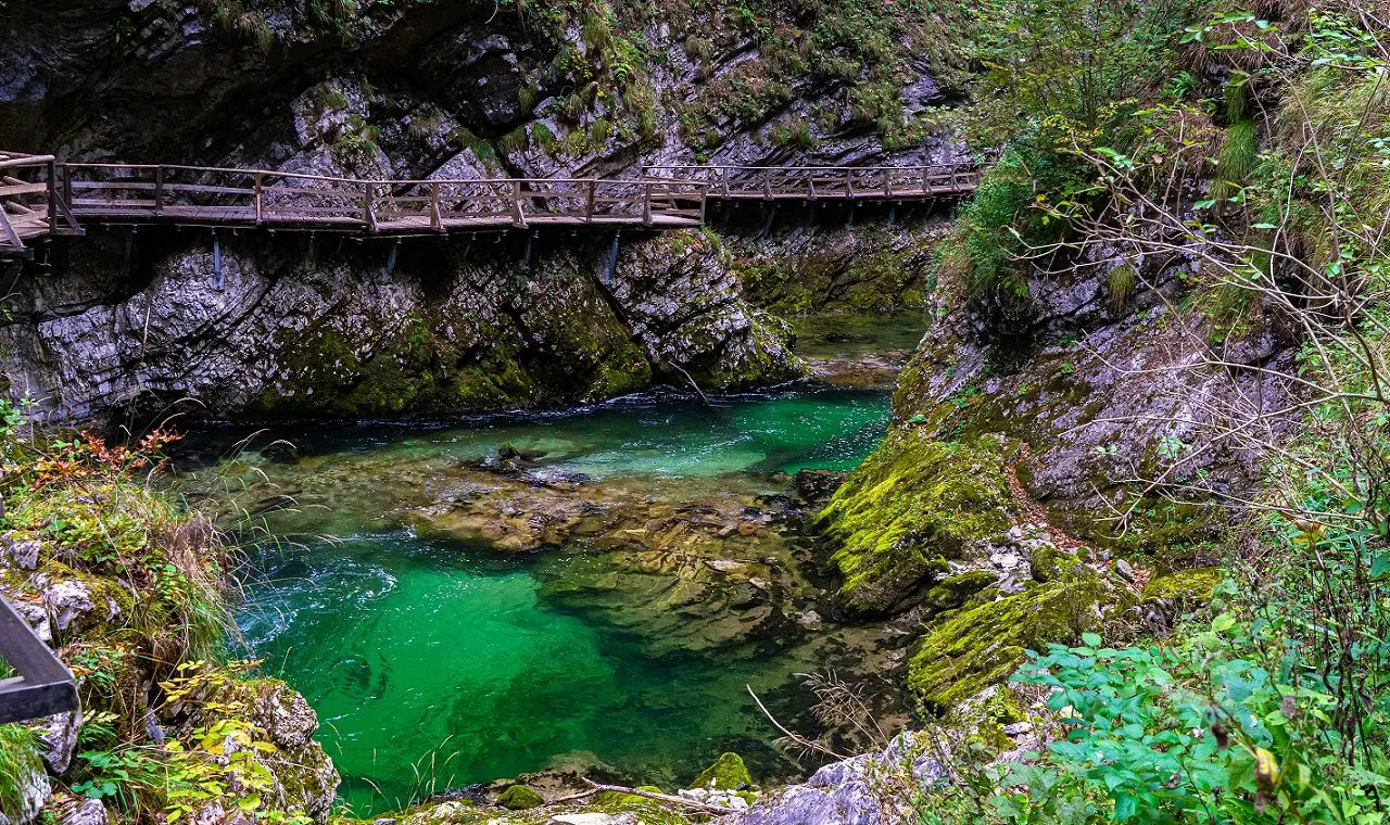 De Vintgarkloof ligt een paar kilometer ten noorden van Bled, waardoor je dit gemakkelijk met elkaar kunt combineren. Door deze kloof stroomt de rivier Radovna. De wandeling door deze kloof is vrij kort (1,6 kilometer), maar je bent toch een dik uur onderweg omdat je constant je ogen uitkijkt. De wandeling is vrij gemakkelijk via houten paden en onverharde paden langs de oever. Je eindigt bij de Šum waterval. Hierna kies je of je terugwandelt via een andere route naar de entree (met parkeerplaats) of via het dorp Zasip naar Bled wandelt in een uurtje.