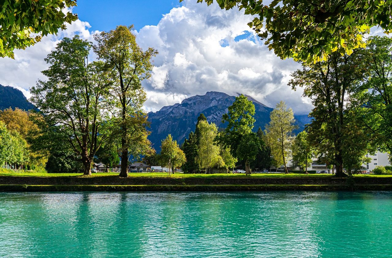 Vanuit Nederland kun je ook in één keer doorreizen naar Interlaken (in plaats van stoppen in Bazel). Interlaken is een van de leukste outdoor plekken in Zwitserland. Er zweven altijd wel paragliders boven deze stad, die tussen de Brienzersee en de Thunersee ligt. Overal om je heen zie je bergen, in de verte zelfs besneeuwde bergtoppen. Ik vond het heerlijk dat mensen hier “gewoon” een stukje in de bergen gaan wandelen en mountainbiken.