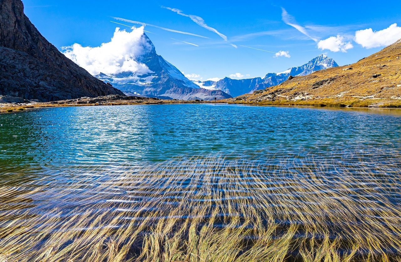 Via een slingerend pad zie je op een gegeven moment de eerste gletsjer aan je rechterzijde. Dat blijft een bijzonder natuurfenomeen. Na ongeveer 2 uur kom ik aan bij de Riffelsee, een kraakhelder bergmeer met uitzicht op de Matterhorn. Jammer genoeg is het al vroeg in de middag en trekken de wolken rondom de top van de Matterhorn. Voor het beste uitzicht (zonder wolken) bij de Riffelsee op de Matterhorn kom je zo vroeg mogelijk in de ochtend. Dat neemt niet weg dat het geen prachtige plek is trouwens!