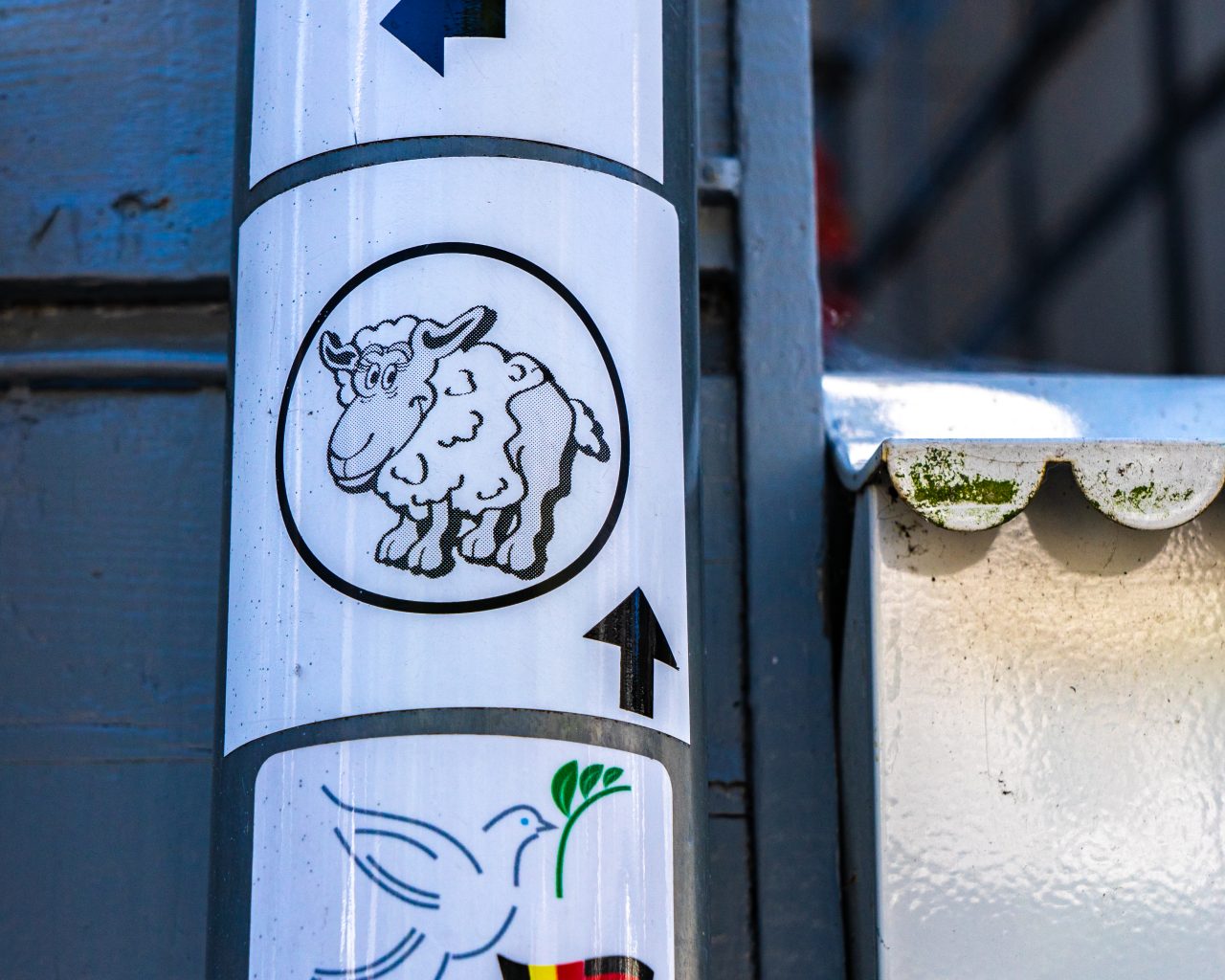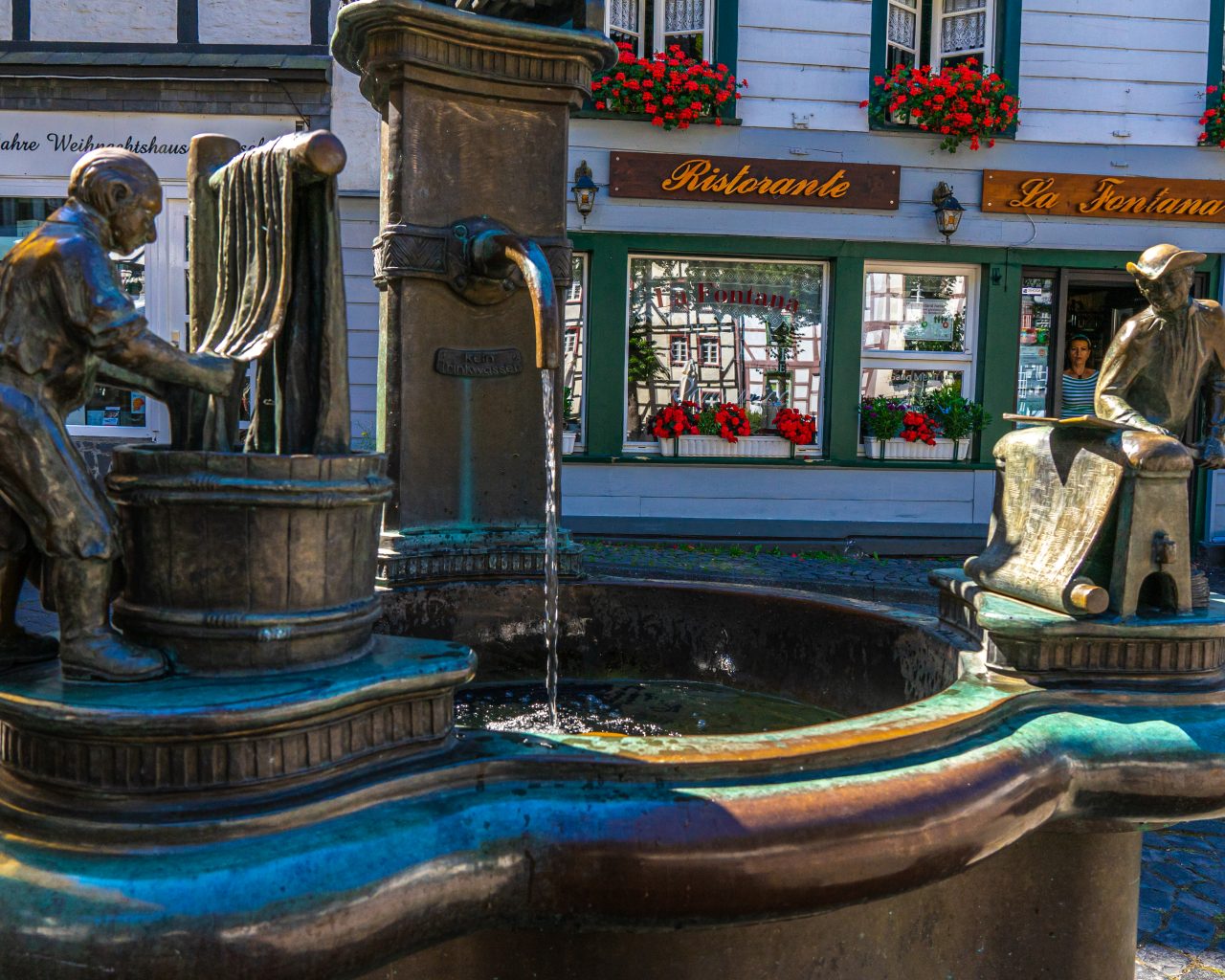Zelf liep ik de Onderweg in Monschau-route van 14 kilometer. De wandelroute wordt gemarkeerd met een schaap. Deze dagwandeling start bij de fontein op de Markt (de Weberbrunnen).