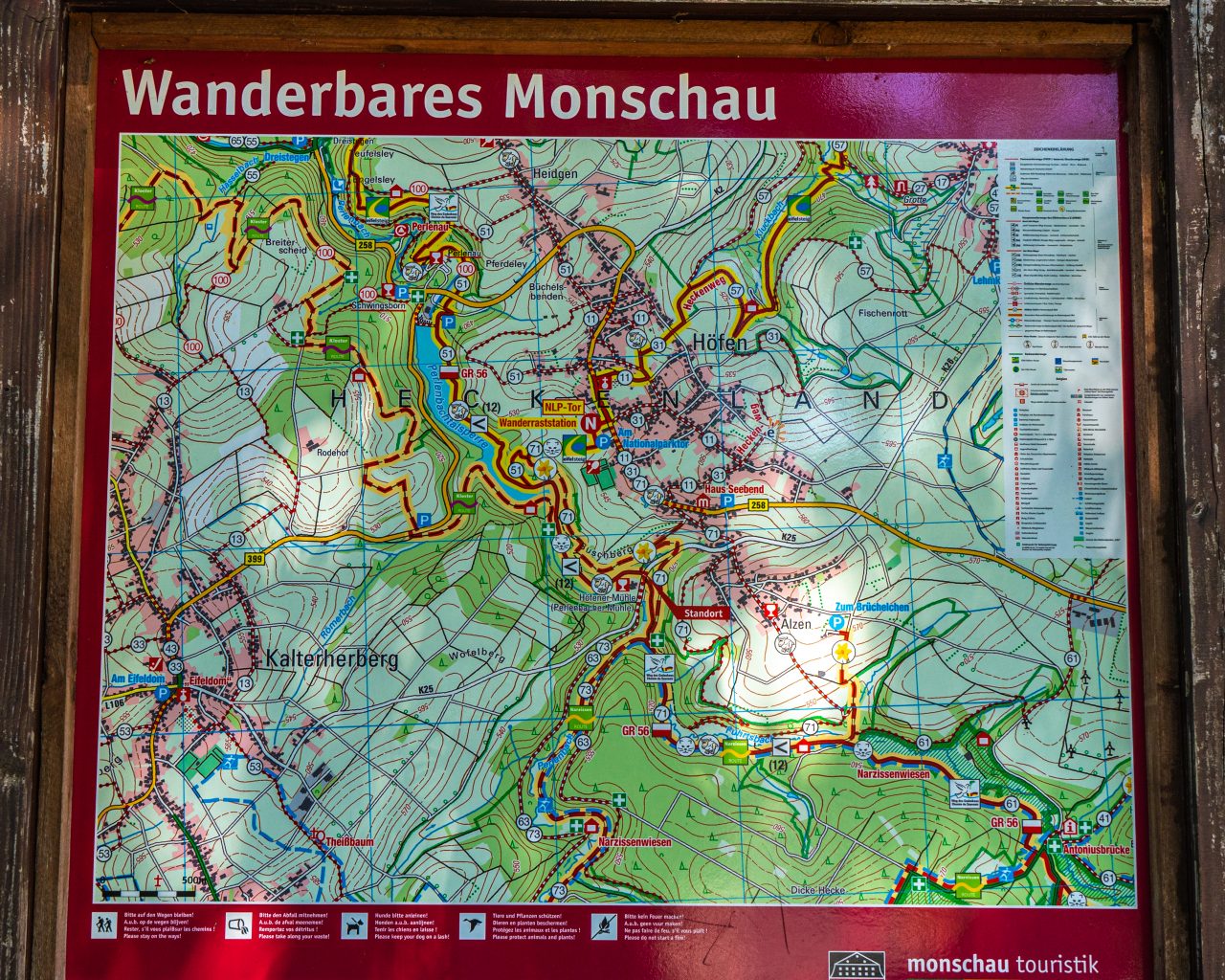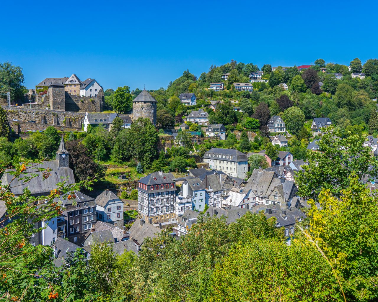 Monschau ligt in de Eifel en je vindt hier heel wat mooie wandelroutes. Wil je een meerdaagse wandeling maken? Dan is de Wilderness Trail van 86 kilometer een leuke optie. Deze wandelroute neemt je in 4 à 5 dagen mee door de Eifel. Hij start in Höfen – bij Monschau – en eindigt in Zerkall.