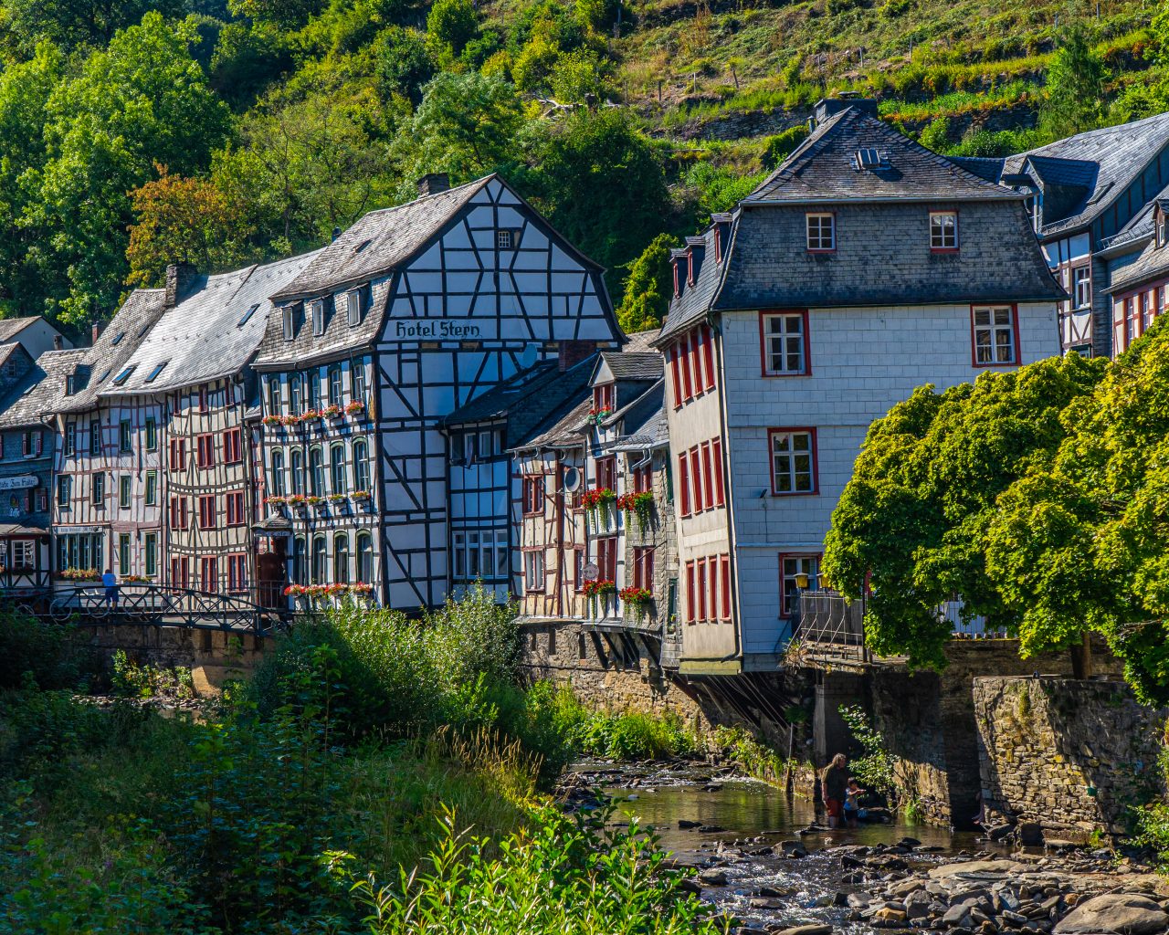 Het dorp wordt in tweeën gesplitst door de Roer rivier (of Rur, als je het op z’n Duits wilt zeggen). Monschau was vroeger een stad waar de textiel- en lakenindustrie bloeide, tegenwoordig is het vooral een toeristische trekpleister.