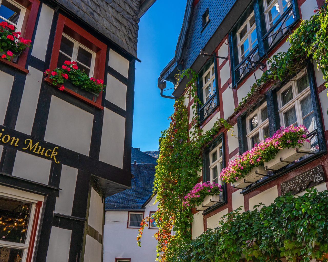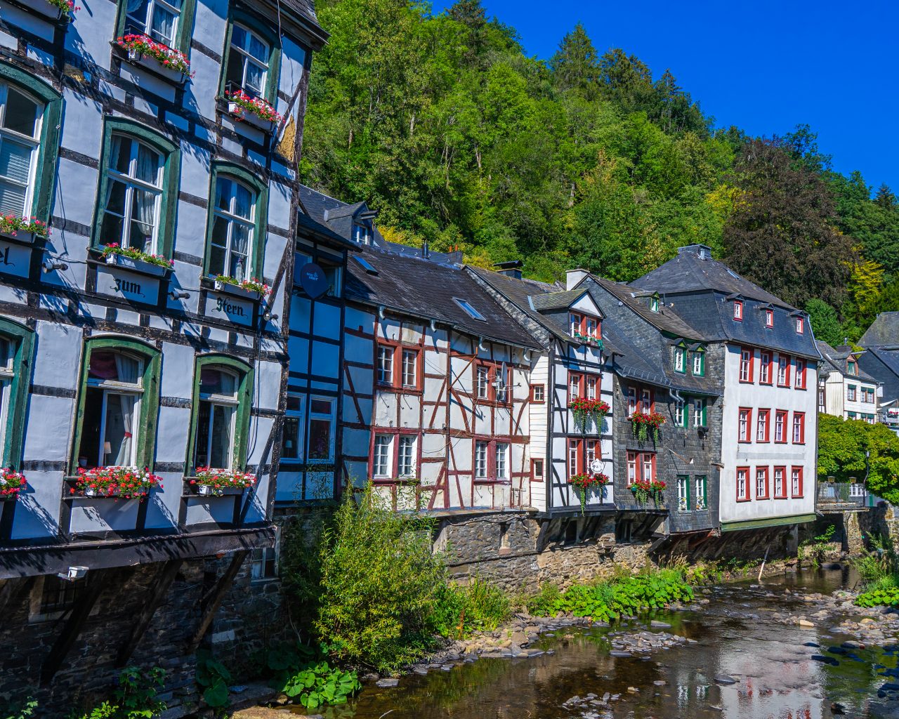 Monschau is een ontzettend fotogeniek dorp, maar niet heel groot. Je kunt hier makkelijk een paar uur doorbrengen, maar dat komt meer omdat je iedere paar meter stopt voor een foto. Het dorp bestaat uit prachtige vakwerkhuizen. Een van de bekendste huizen is het Rode Huis, naast de Evangelische Kerk. Veel bezienswaardigheden heeft Monschau eigenlijk niet: het hele dorp is eigenlijk een openluchtmuseum. Ook de burcht (Burg Monschau) is een blikvanger. Vanaf de Haller Ruïne – waarschijnlijk ooit een wachttoren of burcht geweest – heb je een mooi uitzicht over het dorp.