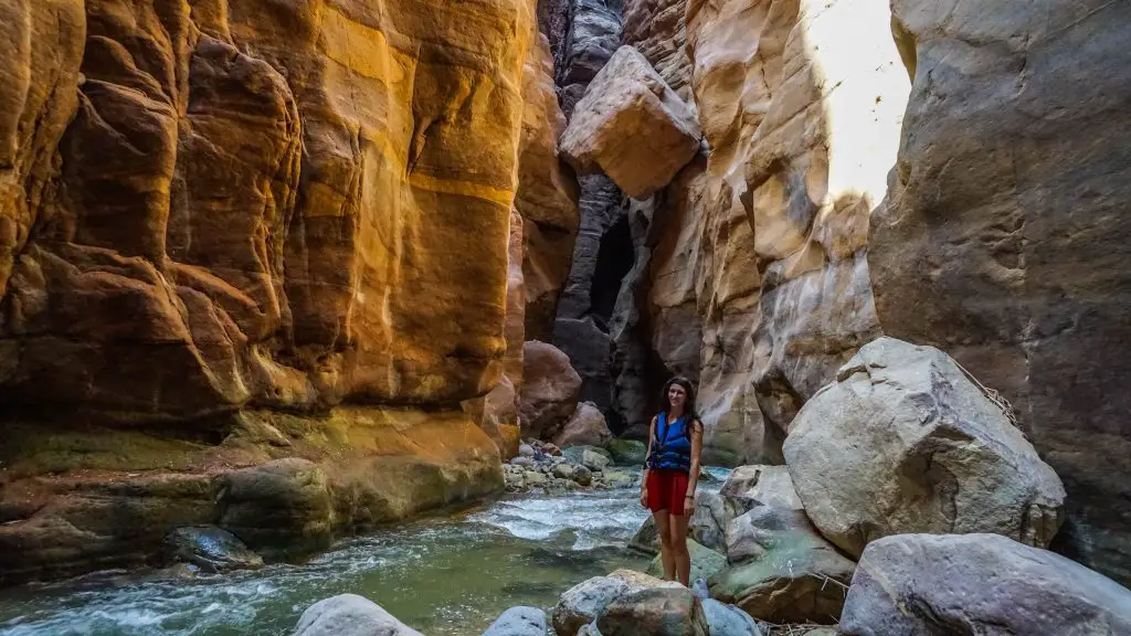 Wadi Mujib in Jordanië is het laagste natuurreservaat ter wereld; 400 meter onder zeeniveau. Dwars door dit natuurreservaat loopt een canyon, een natuurlijk pretpark voor avontuurlijke mensen. De “gemakkelijkste” wandeling die je door dit park kunt maken heet de Siq Trail. Metershoge bruine rotsen torenen boven je uit terwijl je door het water wandelt. Het water wordt steeds dieper, waardoor je uiteindelijk moet zwemmen en op glibberige rotsen moet klimmen. Nadat je de grote waterval hebt bereikt ga je via dezelfde route terug naar de ingang. De canyon mag alleen tussen begin april en eind oktober bezocht worden. De entree voor volwassenen is 21 JD. In de overige maanden kun je de Ibex Trail in Wadi Mujib lopen.