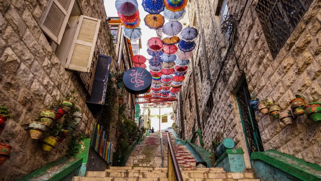 Een van de meest schattige straten in Amman is ongetwijfeld deze straat met de paraplu’s. De straat heeft geen naam, dus het kan lastig zijn om deze op Google terug te vinden. Je vindt deze straat vlak bij restaurant Hashem, tegenover de Jordan Post Office in de Prince Muhammed Street.