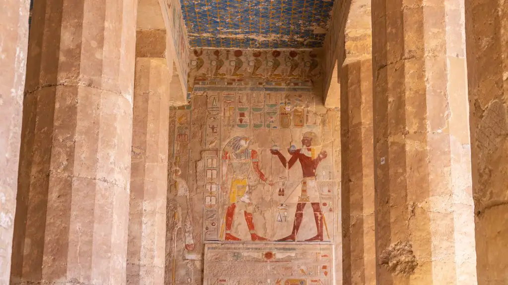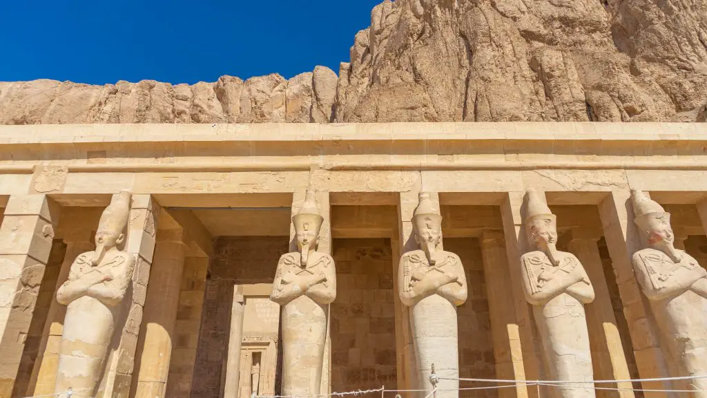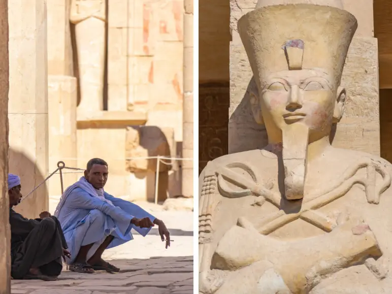 Een vrouw met een naam die onmogelijk is uit te spreken, maar ze was wel de enige vrouwelijke farao in het Oude Egypte die een tempel voor zichzelf liet bouwen en dat is toch best wel tof. Deze immense tempel wordt ook wel Deir el-Bahari genoemd. Er is hier ontzettend veel te zien, maar een van de meest indrukwekkende dingen is toch wel de beeldengalerij van Hatsjepsoet. Aangezien het in Egypte ongebruikelijk was dat een vrouw over het land regeerde liet zij zichzelf met een baard afbeelden, als een ‘koning’. Ik zou je aanraden om zo vroeg mogelijk naar de Tempel van Hatsjepsoet te gaan, aangezien de meeste tours bij de Vallei van de Koningen beginnen. Ik was hier rond 8 uur ’s ochtends en het was nog heerlijk rustig.