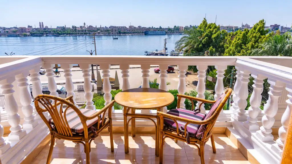 Het voordeel van overnachten op de West Bank is dat het hier een stuk rustiger en relaxter is dan de East Bank. Vanaf hier kun je bovendien vroeg vertrekken naar alle archeologische plekken op de westelijke oever. El Mesala Hotel ligt op een steenworp afstand van de bootplaats vandaan. Er is een klein zwembad aanwezig, vanaf het balkon heb je een mooi uitzicht en de bedden zijn comfortabel. De WiFi werkt prima en er is zelfs airconditioning aanwezig. Ik betaalde 180 Egyptische pond per nacht voor een privékamer.