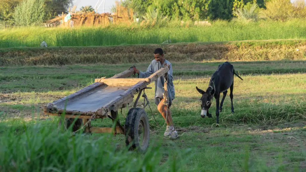 Als je een ander beeld van Luxor in Egypte wilt krijgen zou ik je zeker aanraden om een paar uurtjes op de westelijke oever van de Nijl door te brengen, oftewel de West Bank. Het contrast met het chaotische stadsleven op de oostelijke oever en het relaxte plattelandsleven op de westelijke oever is erg groot. Met name tijdens de zonsondergang is het heerlijk wandelen hier, vanwege de temperatuur en omdat er dan ook meer bedrijvigheid op straat is. Overdag blijven de meeste mensen namelijk binnen zitten. Maar aan het einde van de middag loopt en speelt iedereen op straat, de mannen gaan met hun ezels en karren terug naar huis en vrouwen verzamelen zich in groepjes om bij te kletsen.