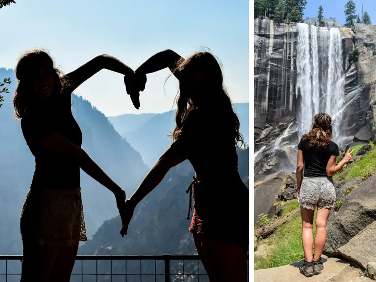 Een wandeling waar ik al dagen naar uitkijk: de Mist Trail in Yosemite Nationaal Park. Tijdens deze wandeling wandelen we naar de bekende Vernall Fall en de indrukwekkende Nevada Fall. Het eerste gedeelte – tot aan Vernall Fall – is goed te doen, maar vrij druk. Ondanks de drukte is het een van de mooiste watervallen die ik ooit heb gezien. Mijn zusje en ik drukken ons door de menigte en zoeken een leuke plek om foto’s te maken.