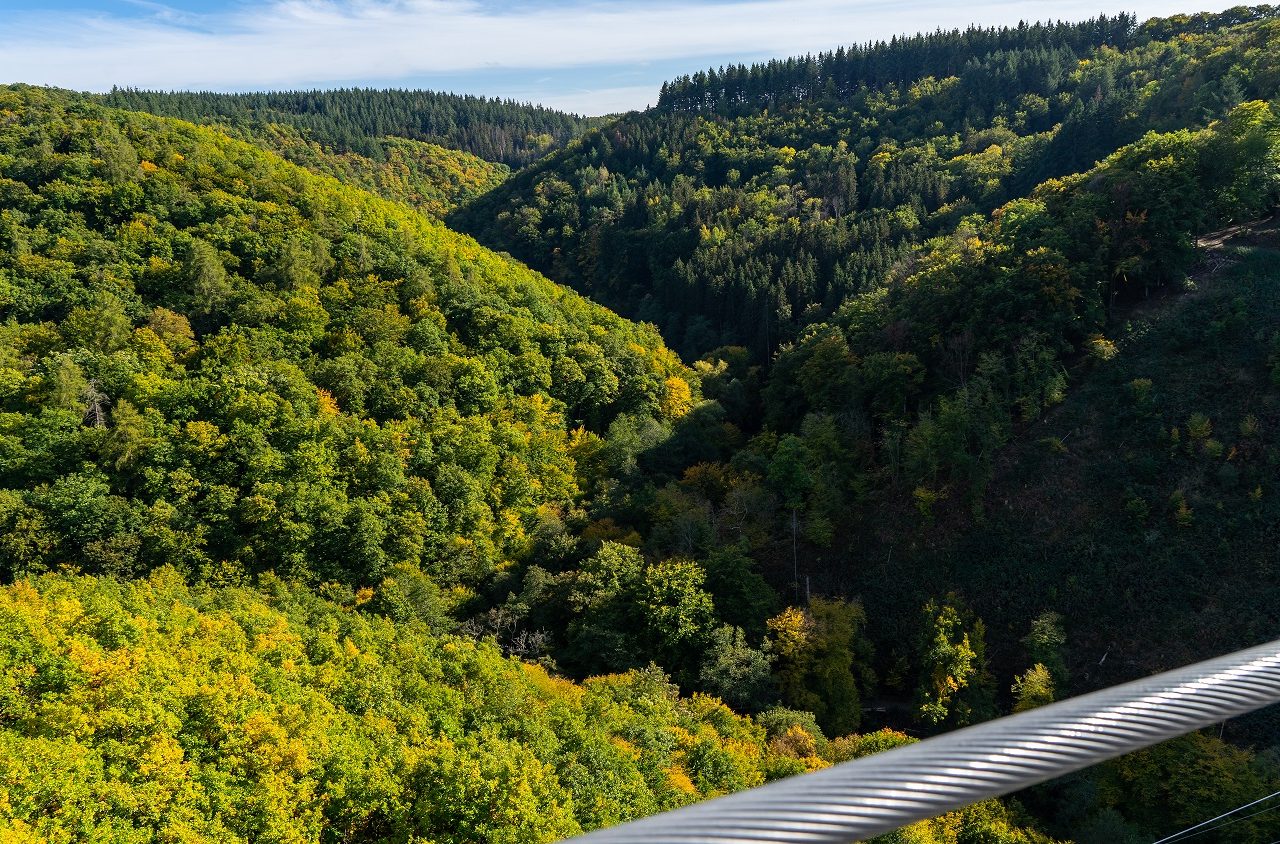 Tussen de dorpjes Mörsdorf en Sosberg hangt een brug van maar liefst 360 meter lang. Toen ik in Mörsdorf arriveerde, verwachtte ik in eerste instantie geen bos met een hangbrug. De omgeving is namelijk vlakke akkerbouw met veel windmolens. Maar als je eenmaal het dorp verlaat en het wandelpad volgt daal je af in een bosrijk gebied.
