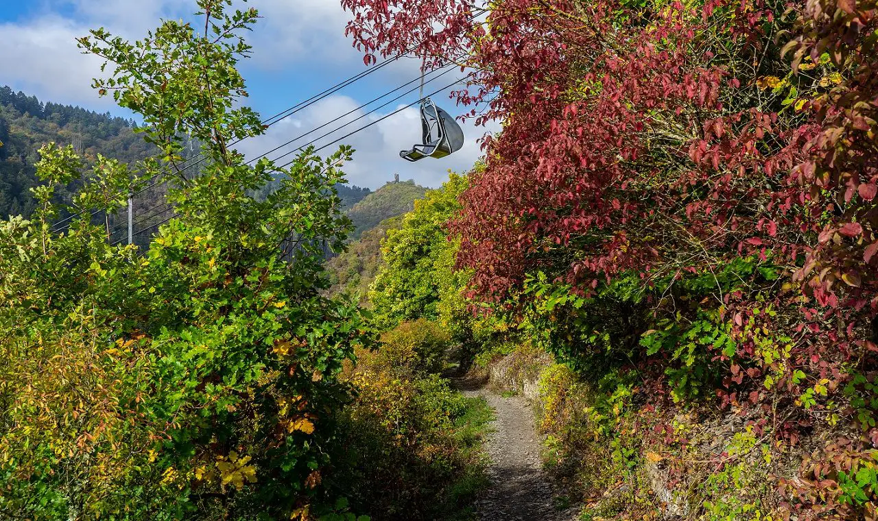 Als je niet naar boven wilt wandelen kun je ook de stoeltjeslift van Cochem nemen: de Sesselbahn. Het eindpunt van deze lift stopt vlak bij een van de beste uitzichtpunten over Cochem: het Pinnerkreuz. In principe kun je hier de hele dag naartoe, maar de beste uitzichten over Cochem heb je tijdens de zonsondergang.
