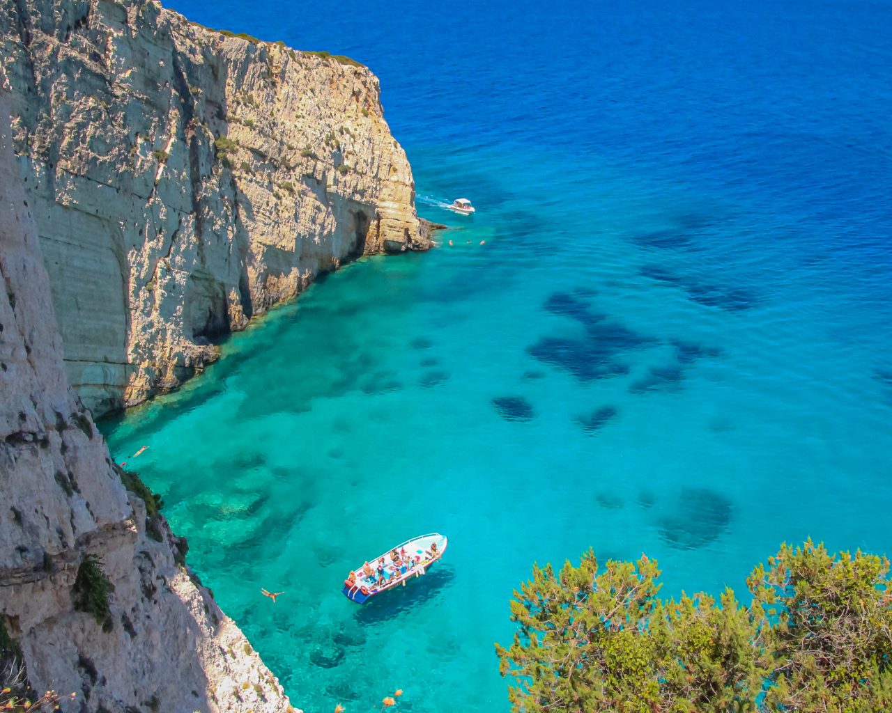 Zakynthos kent een paar prachtige baaien. Een van de bekendste is die van Navagio Beach in het noorden van Zakynthos. Waarom? Omdat je OP het strand een gigantisch scheepswrak ziet liggen. Het schip strandde hier in de jaren tachtig en ligt sindsdien op het verlaten strand. Dit levert een prachtig plaatje op en maakt Zakynthos wereldwijd zo bekend. Leuk weetje: Navagio is Grieks voor scheepswrak.